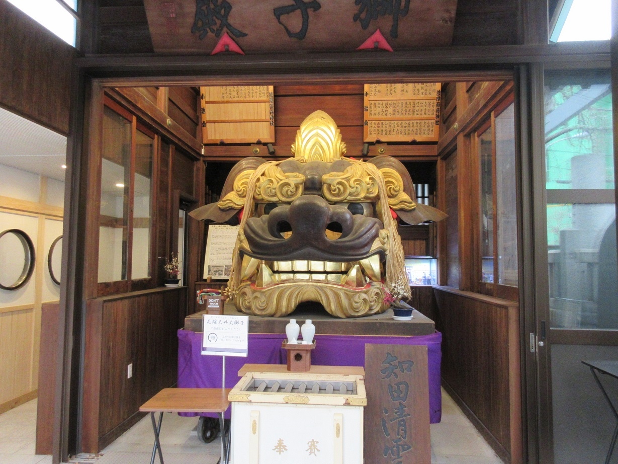 築地場外市場からほど近い、波除稲荷神社を見学した際、境内の社殿に向かって右側の「厄除天井大獅子」が目に留まりました。関東大震災や戦災で焼失した獅子頭が多いなか、これは幸い現在まで残る貴重な存在とのこと。「厄除天井大獅子」は黄色のボリュームのある髪など非常にインパクトがあり、鬼滅の刃の煉獄杏寿郎にも見え、とても親しみが持てました。築地だけに「うまい!」と今にも叫びそうで。。。