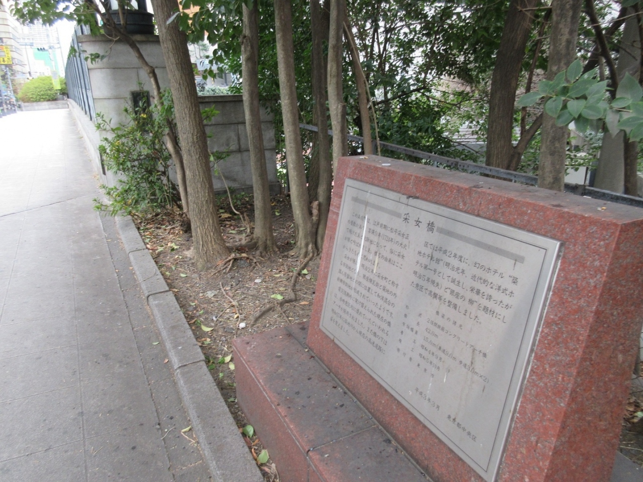 歌舞伎座周辺を散策した際、新橋演舞場からもほど近い場所にあるかつての築地川の上に架かる橋が采女橋です。「うねめ」という中々読めない漢字が使われていることもあって、なじみにくく、この橋自体も万年橋に比べると地味な雰囲気でした。ただ、欄干にはこだわりが感じられ、橋に芸術的な色合いを添えていました。なお、橋の下には首都高速道路が走っており、川であった面影はありませんでした。