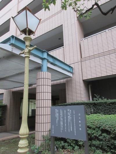居留地中央通りを南に向かって散策していた際に、目に留まったのがこちらの【ガス街頭柱】です。説明書きを読むと、もとは「中央区立第二中学校」にあった物を移設したとの記載がありました。文明開化の時代、築地のこの界隈がその最先端の地域であったことを今に伝える遺物で、とても興味深く感じられました。