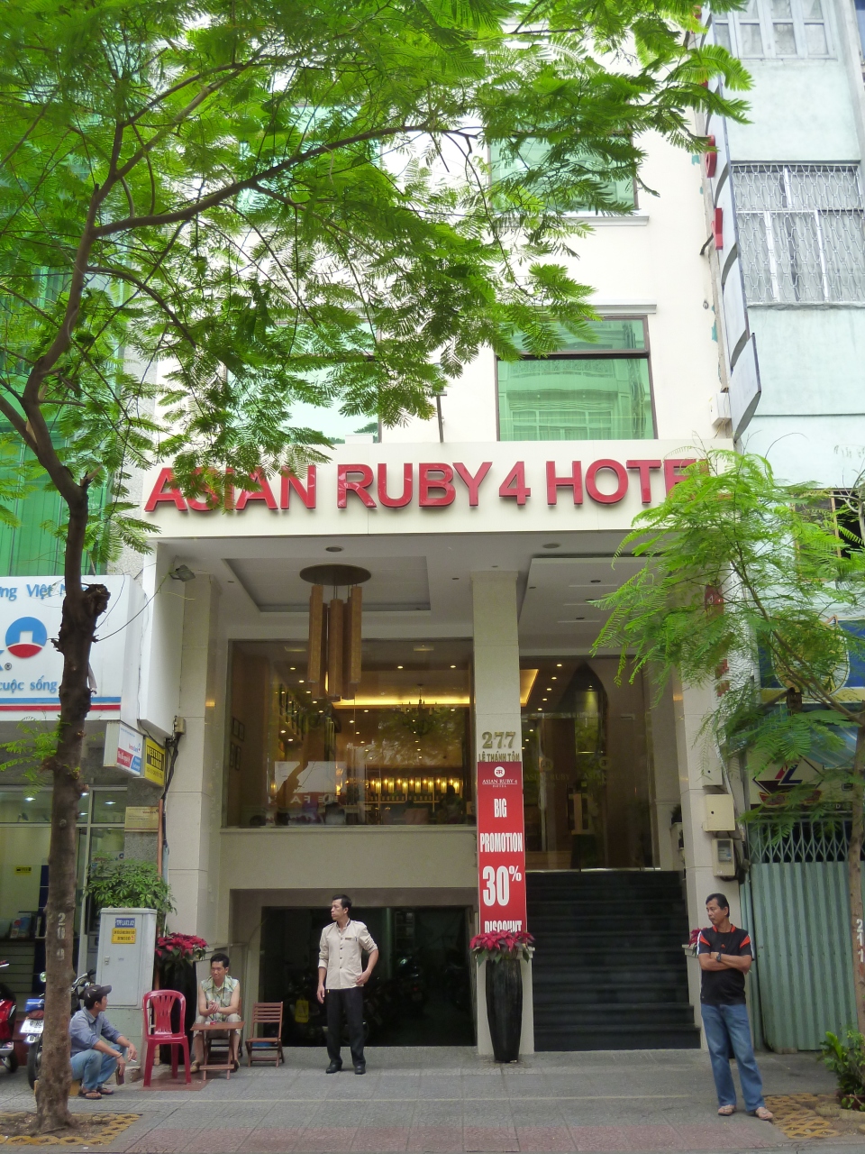 ベンタイン市場から徒歩5分の位置にあるアジアンルビー4。バスルームもゆったりしており、ロケーションと部屋のグレードを考えるとコストパフォーマンスの良いホテルの一つではないでしょうか?ただ、部屋からの眺めはごみごみした裏町しか見えないので、カップルや家族連れにはお勧めしません。あくまでも私のようなコスト重視派むけでしょうね。