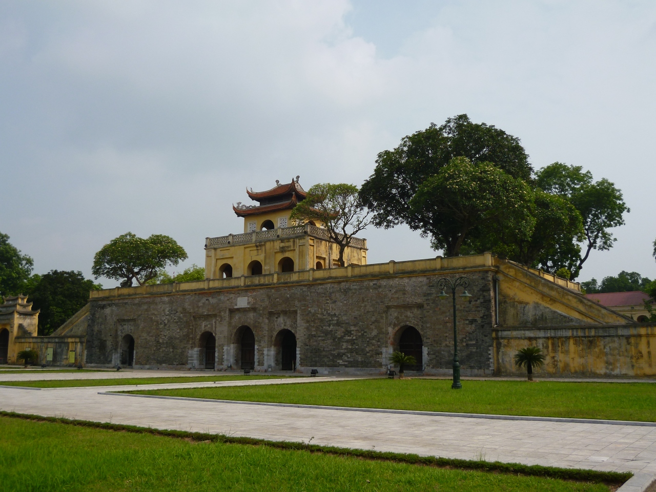 ホーチミン廟から徒歩圏内にありますが、旅行客はそれほど多くなく落ち着いて見学できます。端門を過ぎると、ベトナム軍が戦争中に会議で使用していたヨーロッパ風建築が幾つか保存されています。宮殿も木造建築でしたから、今は残っておらず発掘調査が続いています。