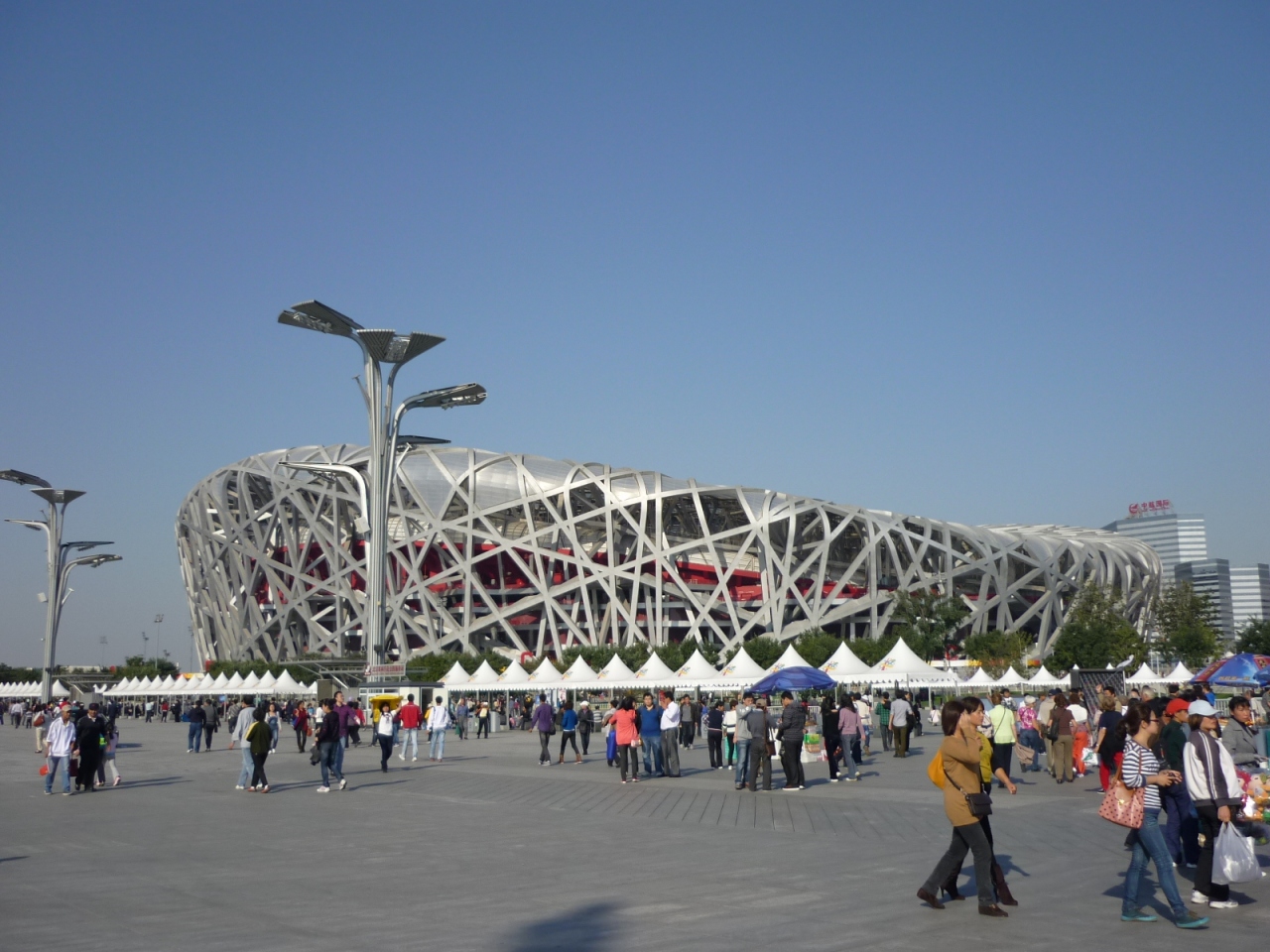 以前中国のドラマで「老大的幸福(長兄の幸福)」という家族や社会の有りようを問う作品がありました。老大(長兄)が血のつながりのないルールーという知恵遅れの少年と二人で、この北京国家体育場(鳥の巣)をバックに芝生に腰かけて満ち足りた時を過ごすというシーンがありましたが、まさに北京市民が気軽に訪れることが出来る場所になっているんですね。- 旅行時期