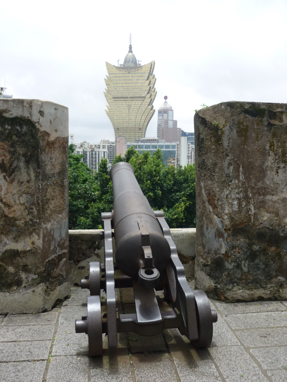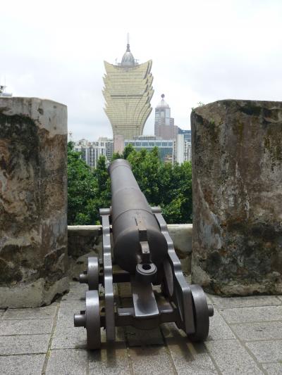 聖ポール教会に向かって右側の坂をあがるとすぐ、小高い丘の上からはマカオの街を見下ろせます。これといった展示があるわけではないですが、有名なホテルリスボアなどが手が届きそうな場所に見えますし、天気の良い日のお散歩には丁度よいかな。
