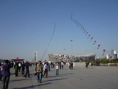 広い、とにかく広いのです。北京五輪のメイン会場になり圧倒的なスケールの開会式が開かれたのがここです。今は、周りの広大なエリアを取り込んで、市民が凧揚げに興じたりなごめるスポットになっています。