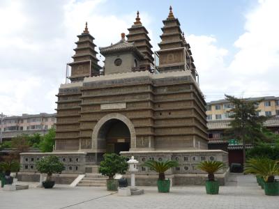 内モンゴルのフフホトの中心部にある一風変わった形の塔です。駅前で「五塔寺」と言うとオート三輪で頭を天井に打ちつけながらもたどり着くことが出来ます。仏教説話を扱う彫刻が彫られたレンガタイルが張られており、小さくても光るものがあります。
