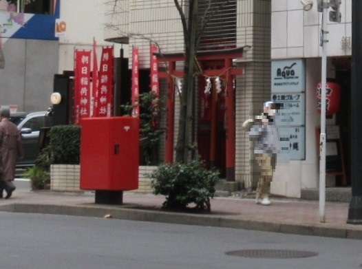 ビルの谷間の狭小地に、赤い鳥居とのぼり旗が立っており、小さいながらも存在感がありました。