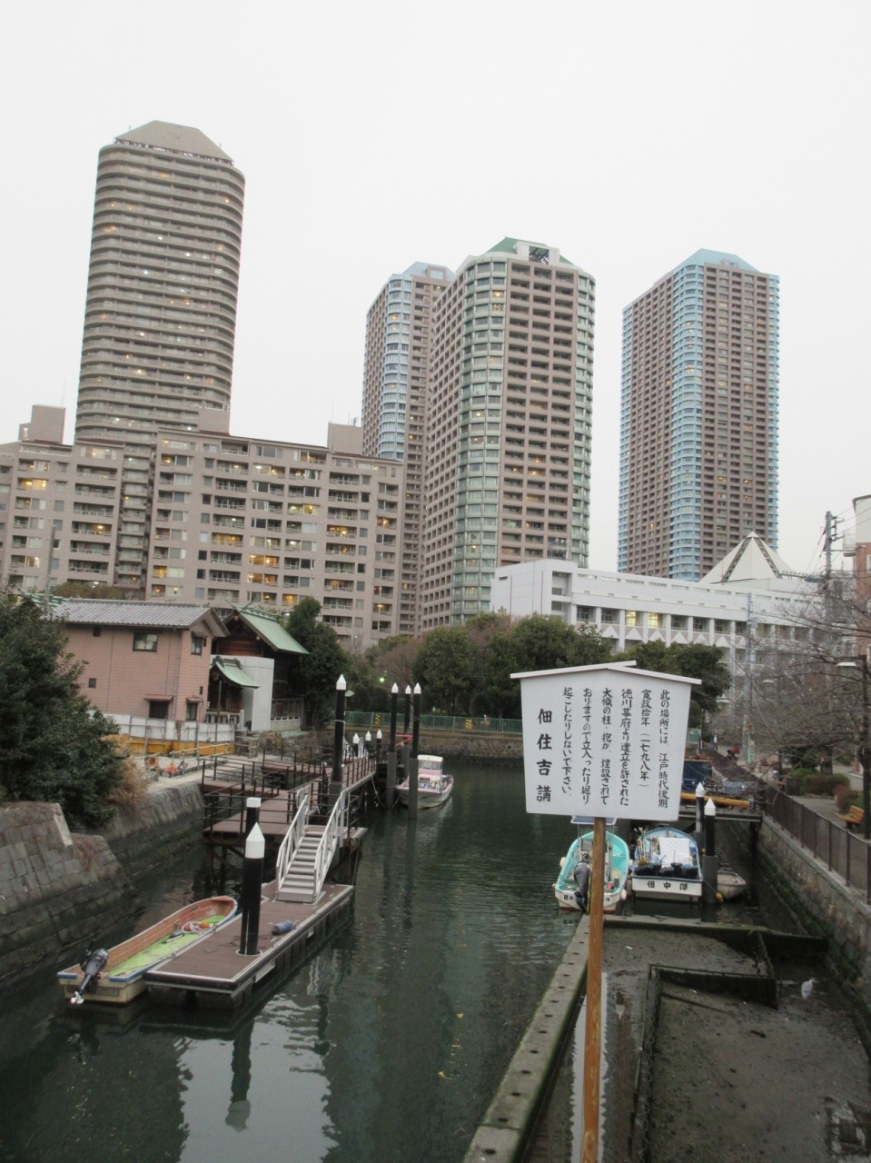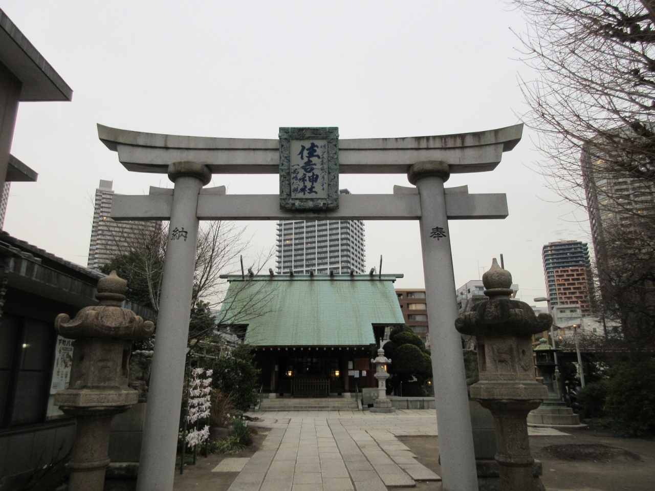 佃島界隈を散策した際に立ち寄って神社がこちらで、江戸時代初期より佃の地を守ってきた鎮守の神になります。細い水路や路地に囲まれた一角に、ひっそりと佇んでいました。「佃住吉講」の名前の入った立て札が、水路の脇に設置されていましたし、地元の方が大切に維持管理をしていることを見て取ることが出来ました。