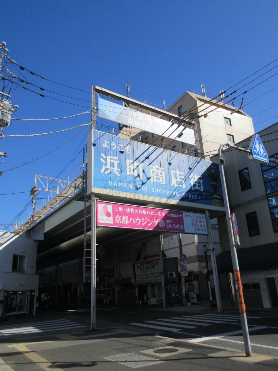 丸亀駅を出て左手、【猪熊弦一郎現代美術館】とは逆の方向に進むと、道幅のあるアーケード街があり、そこが【浜町商店街】でした。普通の丸亀市民の台所といった雰囲気の食料品を扱うお店が軒を連ねていました。若い方向けというより、中高年の方向けの商店街でした。この通りから右手に延びるアーケードが通町商店街で、そのまま丸亀城方面にアクセスできるようになっていました。