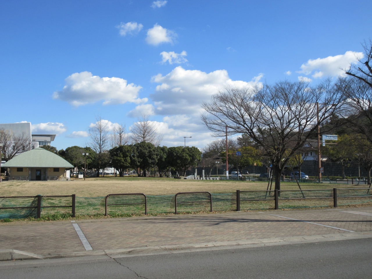 丸亀駅から丸亀駅に向かうと、通町商店街をすぎ程なくしてこの公園の先を通ることになります。何か大きな音が公園の方からするかと思いましたら、丁度公園北半分の整備工事中であったようで、木をチェーンソーで伐採するなど、作業を進めていました。そのエリアを過ぎると、工事の大きな音がする以外は、気持ちの良い公園となっており、丸亀城の高石垣が目の前に迫る雄大な景色を堪能できました。