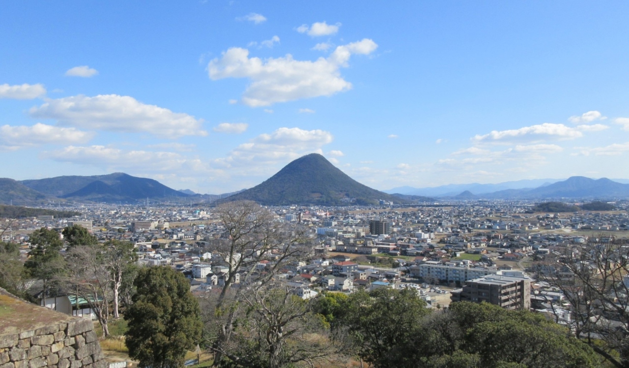 【讃岐富士】の異名を持つキレイな三角錐の山で、丸亀城の本丸に登った際、南東方面にはっきりとそれと分かりました。登山する時間はとれませんでしたが、丸亀城からの陸側の眺望を語る上では、決して無視できない穏やかでのどかな雰囲気を十分に堪能することが出来ました。