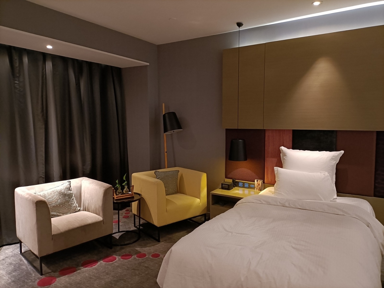 南京南駅からの地下鉄駅や南京空港ターミナルから直結で、いわば空港ターミナルの一部がホテルになっている感じでした。また、ホテルの部屋からは空港の搭乗ゲートが見え、ベッドも程よい硬さで申し分ありませんでした。ネックは浴室の扉が閉まりにくかった事くらいですね。