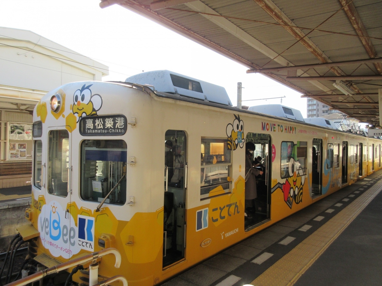 高松築港駅と栗林公園まで、栗林公園から片寄町まで、高松琴平電気鉄道(琴電)に乗りました。赤と白のツートンカラーの車体と、かわいらしい蜂のマスコットが描かれた黄色い車体に乗ることが出来ました。駅間の距離も車両も短いので、改札から乗車までの距離も近くて、バスに乗るような感覚で気軽に利用することが出来ました。