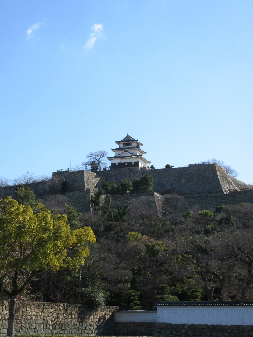 丸亀駅からのんびり歩くと20分ほどかかりますが、美しい扇の勾配を描いた石垣や、その上の17世紀に建てられ現存する天守閣など、一見の価値があります。山麓から急斜面を上がり、苦労して漸くたどり着いた本丸の天守閣から眺める瀬戸大橋や瀬戸内海に浮かぶ島々の眺望は、この上なく素晴らしいです。