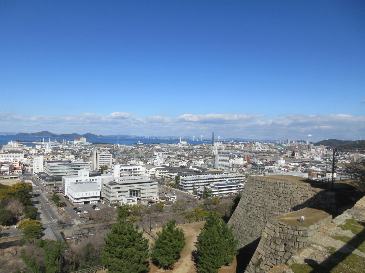 本丸からの瀬戸大橋や瀬戸内海の眺望は、この上なく素晴らしいです。