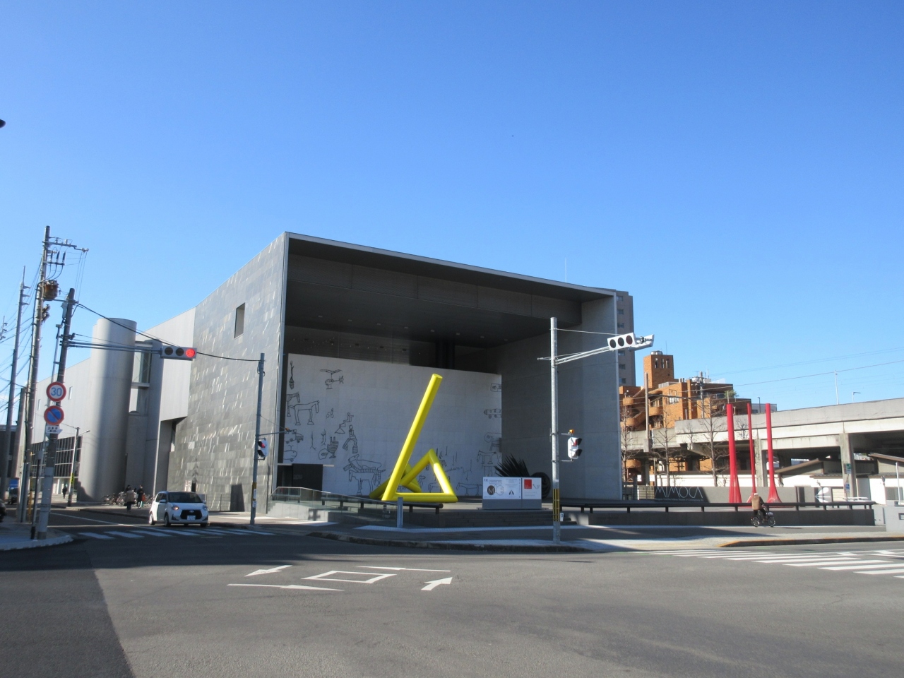 丸亀駅に到着し、南側の出口を出てすぐ右手に、【丸亀市猪熊弦一郎現代美術館】のとても近代的な建物が目に飛び込んできました。猪熊弦一郎丸亀市とも縁のある、国際的な現代抽象画家とのこと。現代美術は今一つ苦手なので、この地を訪れるまでは、まったく存じ上げなかった方ですが、美術館の正面に置かれたオブジェや、壁面の動物を描いた壁画など、見るだけで心が躍るような魅力がありました。