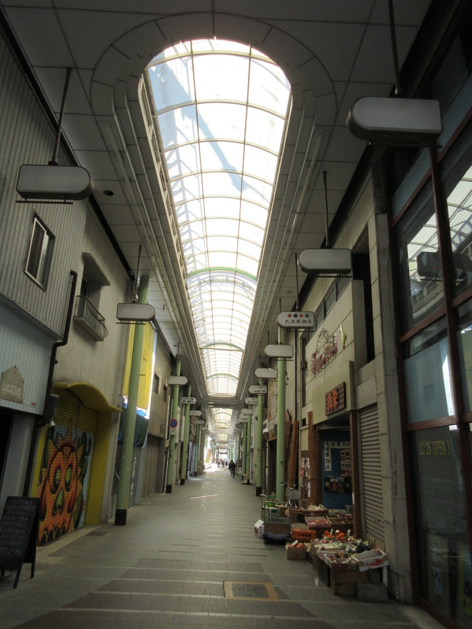 丸亀駅前の浜町商店街から南の丸亀城に向かって南北に延びる数百メートルは続いている商店街で、アーケードもあって天候を気にせずにお買い物ができます。ただ、昼頃に訪れたにも関わらず、シャッターが閉まったままのお店が多くて残念に思いました。なお、丸亀城の天守閣に登り、北の瀬戸内海方面に目をやると、今しがた歩いた来たこの商店街の南端入口が見え、丸亀の街の中心部のサイズ感が分かりました。