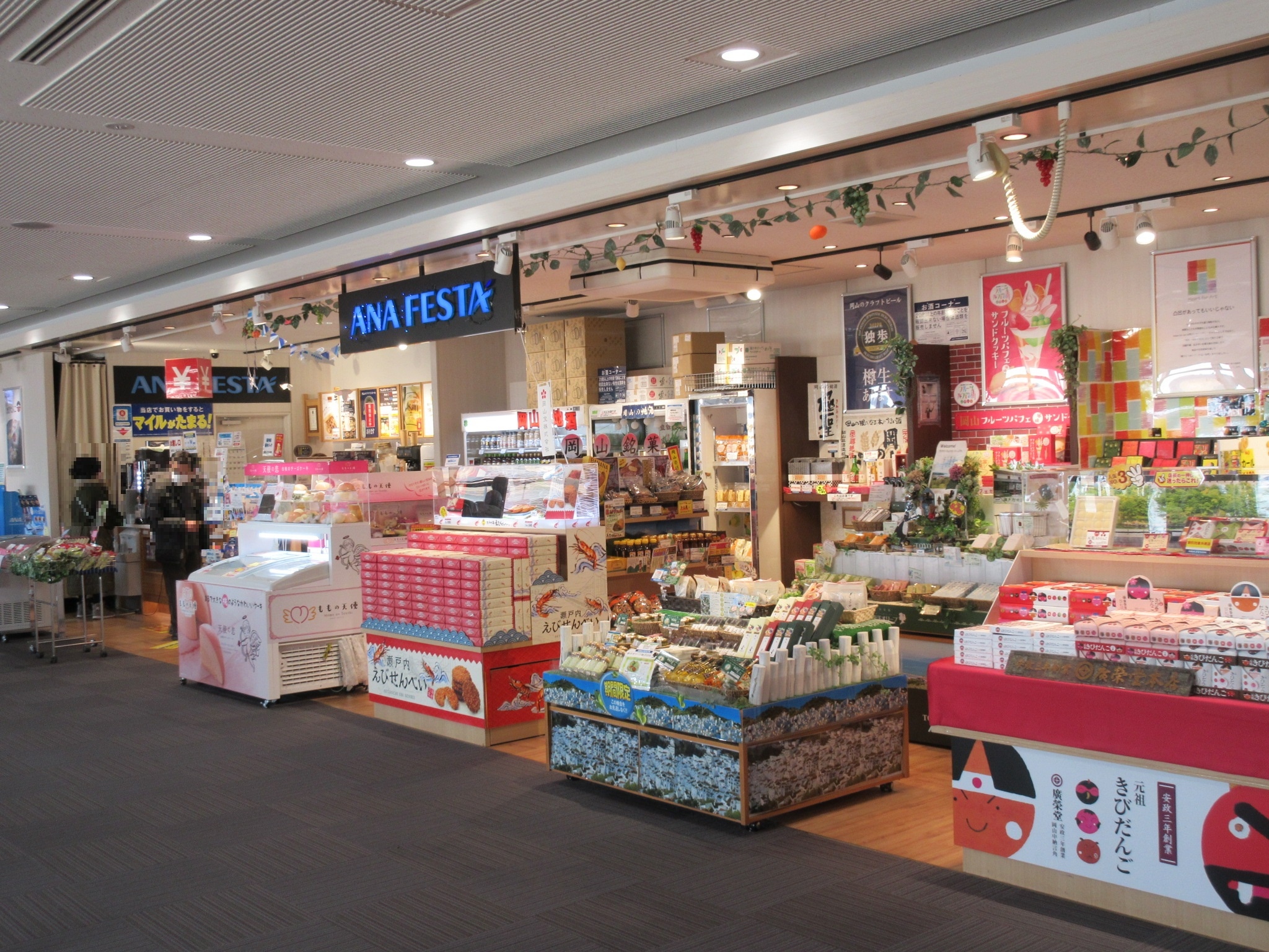 岡山空港を利用した際に、制限エリア内にあるこちらのお店に立ち寄りました。この日は丁度ANAに搭乗予定だったのですが、まさに搭乗ゲート前に店舗があり、ついつい機内で食べるお菓子を買ってしまいました。他にもお土産物も何点がありましたので、岡山を離れる前に名物の黍団子などのお土産を購入できる最後のお店がこちらですね。
