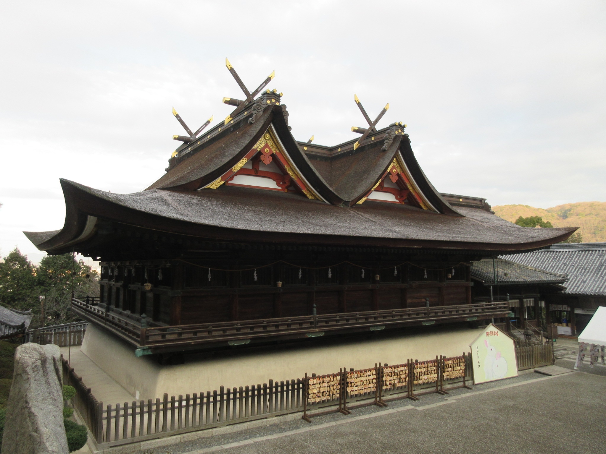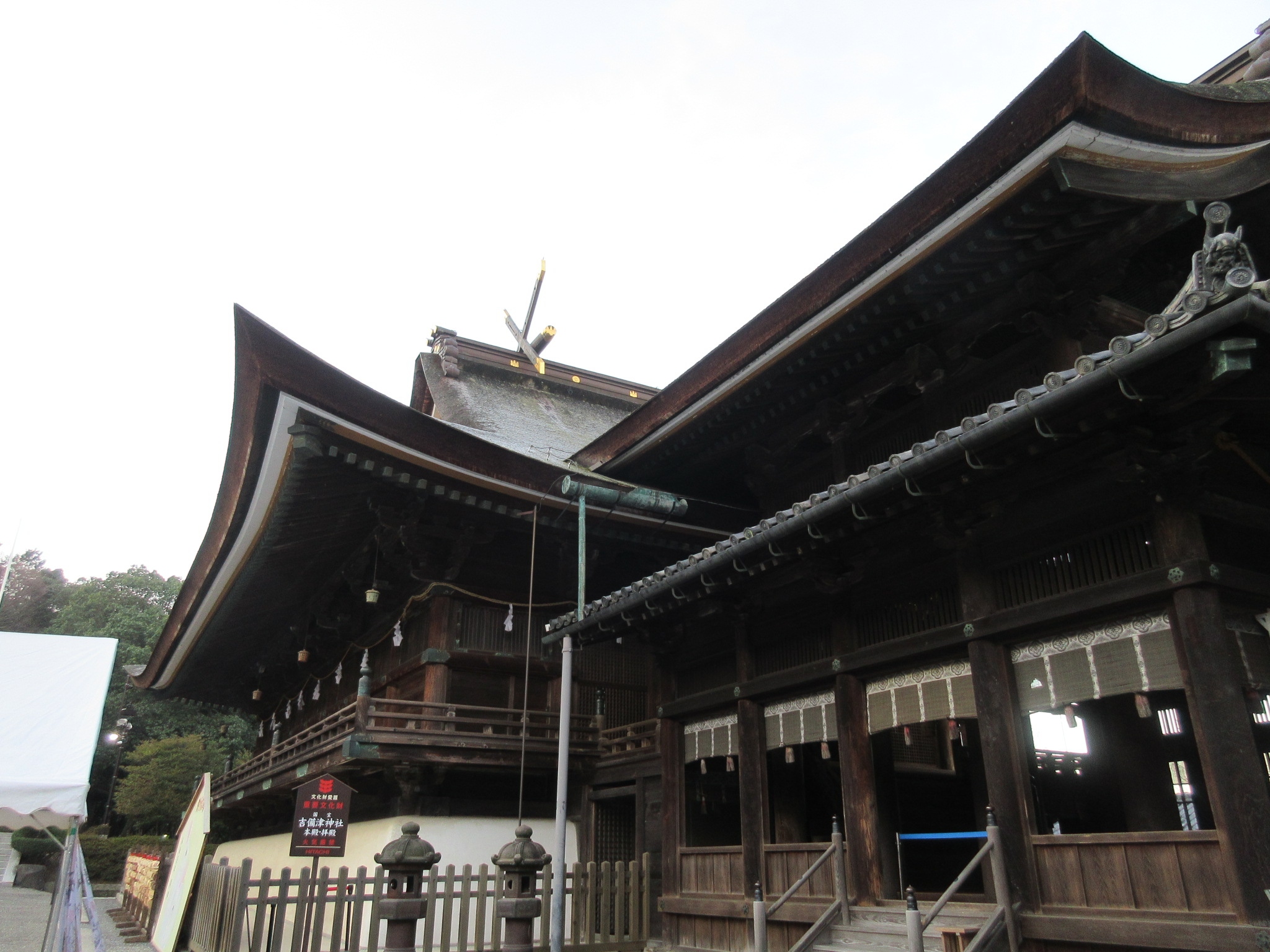 「比翼入母屋造り」という入母屋造りを前後に重ねたような独特の形状をした本殿は国宝に指定されています。