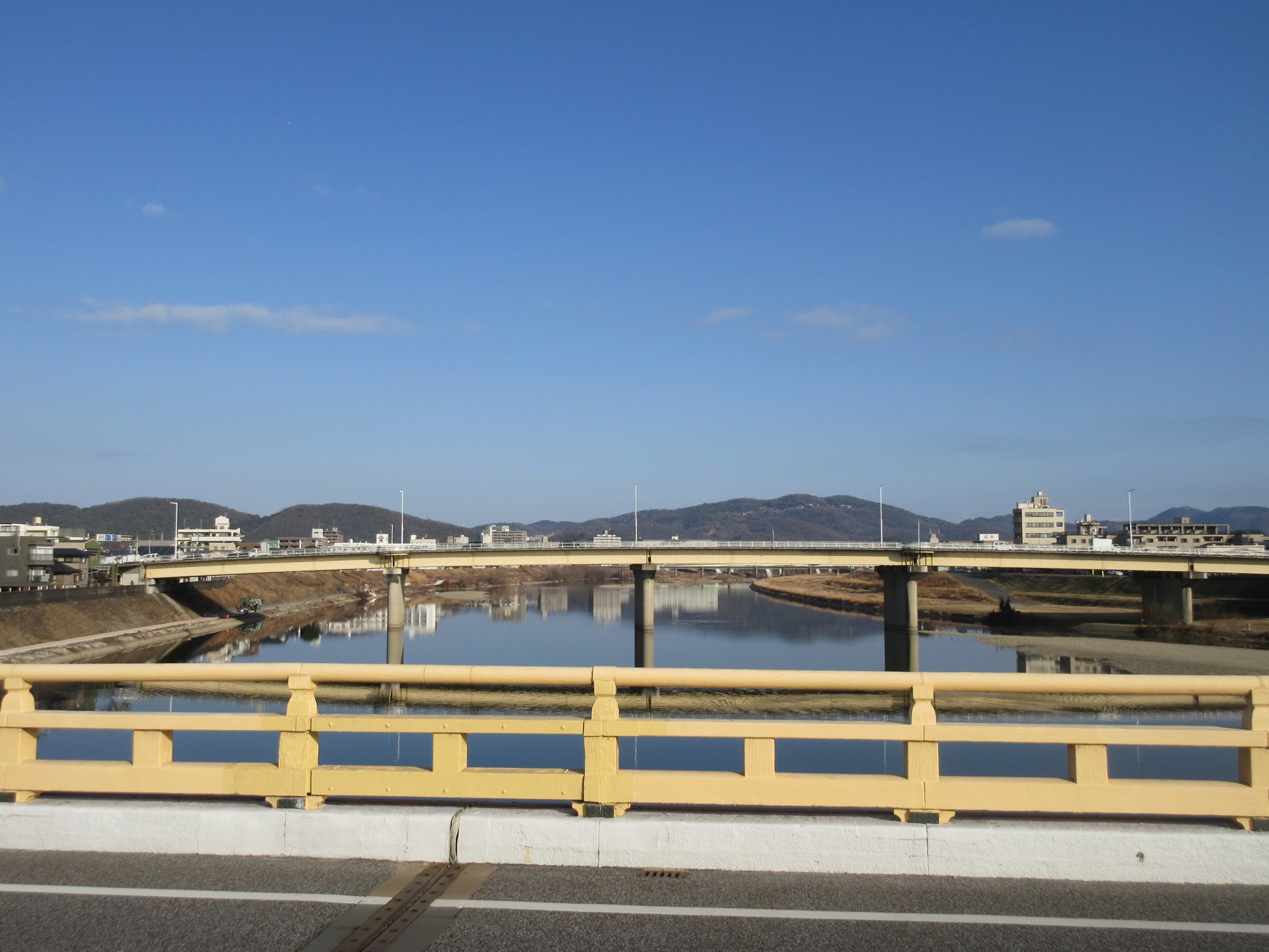 岡山城や後楽園のすぐそばを悠々と流れる静かな河川です。岡山の市街地からは東側に位置しており、路面電車の城下駅から数百メートル東に歩くと川岸にたどり着くことができました。私が岡山を訪問した際は天候にも恵まれ、川上のなだらかな中国山地まで遠く眺めることが出来ました。