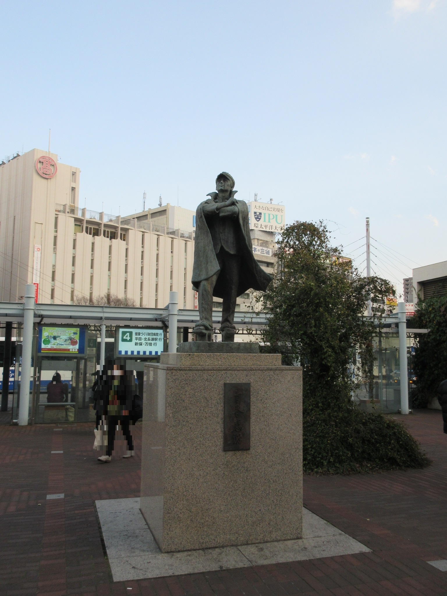 JR岡山駅を下車して東口広場にでると、桃太郎像よりも南に数十メートル離れたところに、バンカラ姿の学生の姿の像が立っていました。岡山は以前にも訪問したころがあったのですが、その時には気が付きませんでした。家族的なつながりが、会社でも学内でも当たり前であった頃の雰囲気が、この像から伝わってくるようでした。