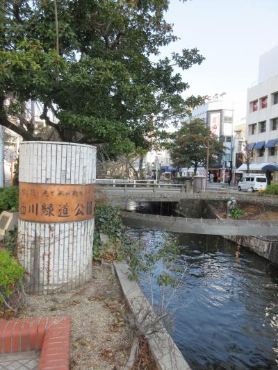岡山市の中心部を南北に流れる幅の狭い西川の河畔が、緑豊かな公園として整備されていました。路面電車の西川緑道公園駅で下車し、散策してみたのですが、何本もの樹木が植えられていて、気持ちの良い散歩道になっていました。こうした公園が中心部にある岡山市民はうらやましく思えました。