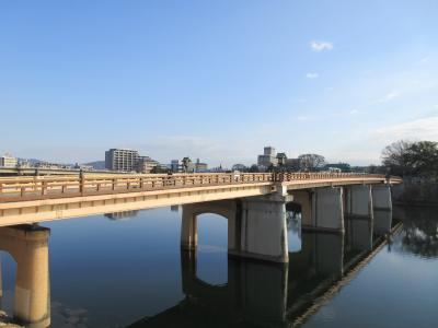 後楽園の正面に向かってこの橋を渡って行きました。車道と歩道が分離されていて、旭川を眺めながらののんびりした旅行者も、危険を感じることなく安心して歩くことが出来ました。路面バスもこの橋を渡って往来しており、岡山有数の交通の要所だと思われました。