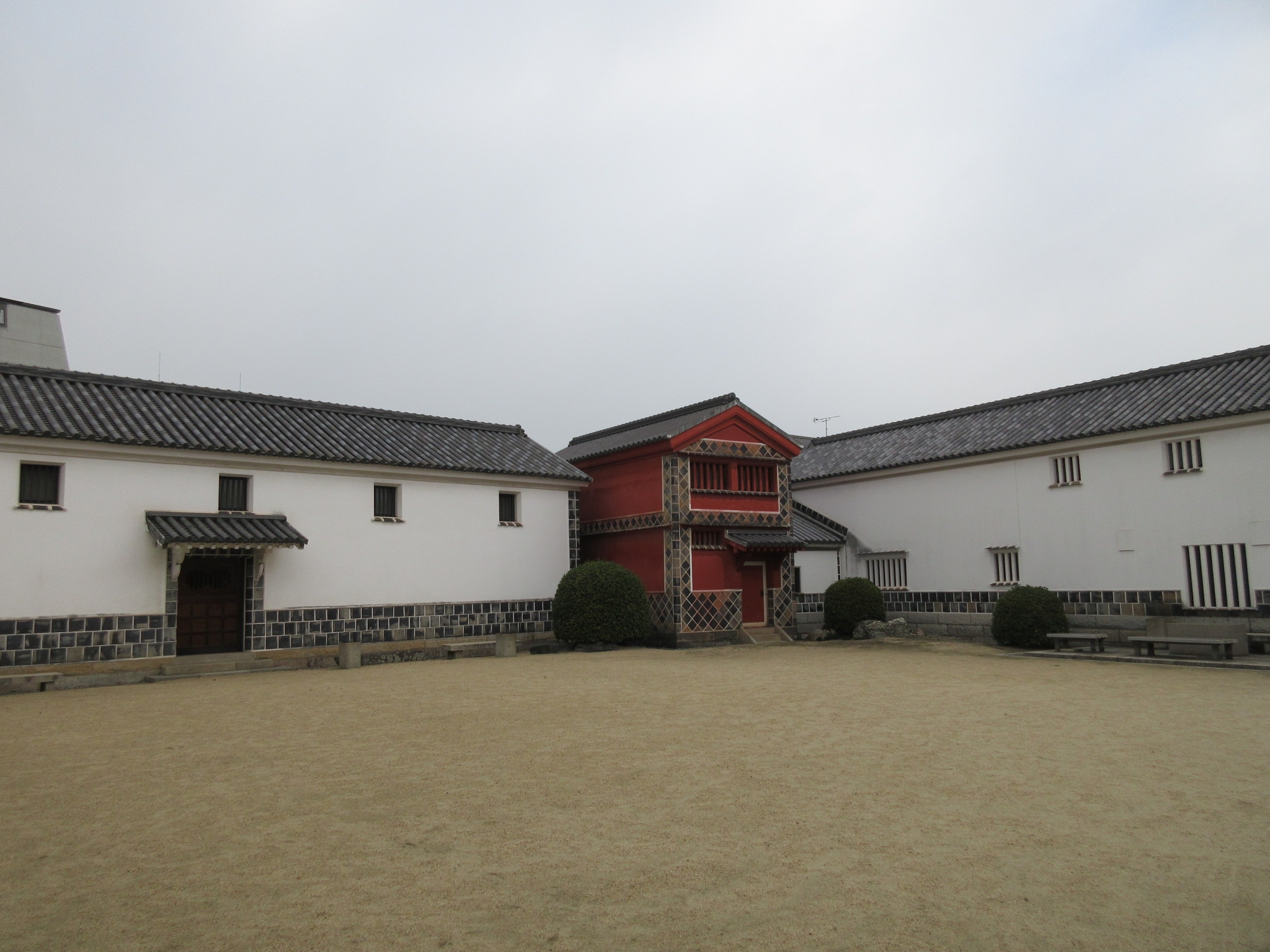 阿智神社から倉敷美観地区を眺めた際に、大原美術館よりも手前に瑠璃色の屋根瓦を頂いた豪邸が見えますが、それがこの有隣荘でした。大原美術館の創立者である大原孫三郎が、その妻のために建設した別邸とのこと。一般公開はしておらず、中国風の華やかな色使いの甍を遠目に眺める位でしたが、立派な邸宅であることは窺い知ることが出来ました。