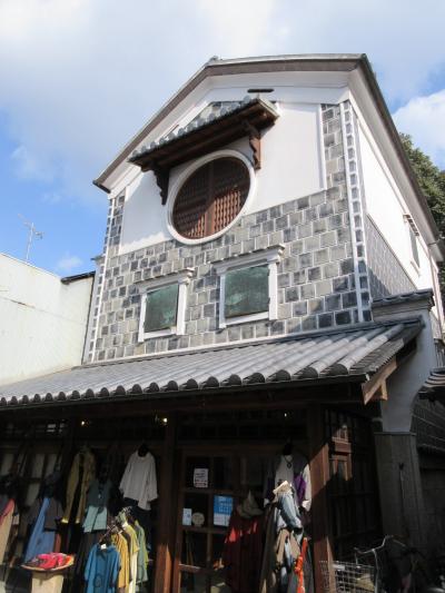 やびす通りを過ぎて倉敷本通りに入ってすぐ、大正の雰囲気のすう林源十郎商店の道を挟んだ向かいにあるお店で、三階建ての白壁の古い建物を利用していました。衣料品を中心に扱いお店ですが、その商品よりも白とグレーの壁面の三階部分の丸い窓が特徴的で、私以外にも思わず立ち止まってカメラを向ける方も何人かいました。