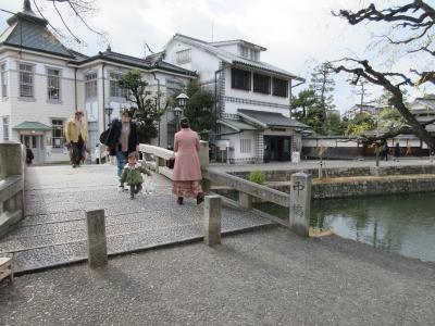 倉敷美観地区の南端にある石橋で、見ごたえある倉敷川沿いの景観を楽しむには、逆光にならないよう、こちらの高砂橋からカメラを向けることになりました。橋の近くにはゴマを扱う専門店や、箸を扱うお店、酒屋、デニムを専門に扱うお店がなどがあつまっていて、買物と合わせて楽しむことが出来ました。