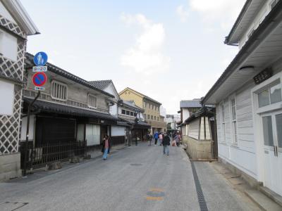 倉敷美観地区といえば倉敷川を中心としたエリアを思い浮かべますが、倉敷川から東北の一角の【本町】地区も、かつての倉敷代官所もあって街道として発展した場所らしく、白壁の古い建物が立ちならんでいました。そうした建物を使ったおしゃれな専門店や日本旅館も多く、時代劇にも使えそうな風情ある景観が楽しめました。