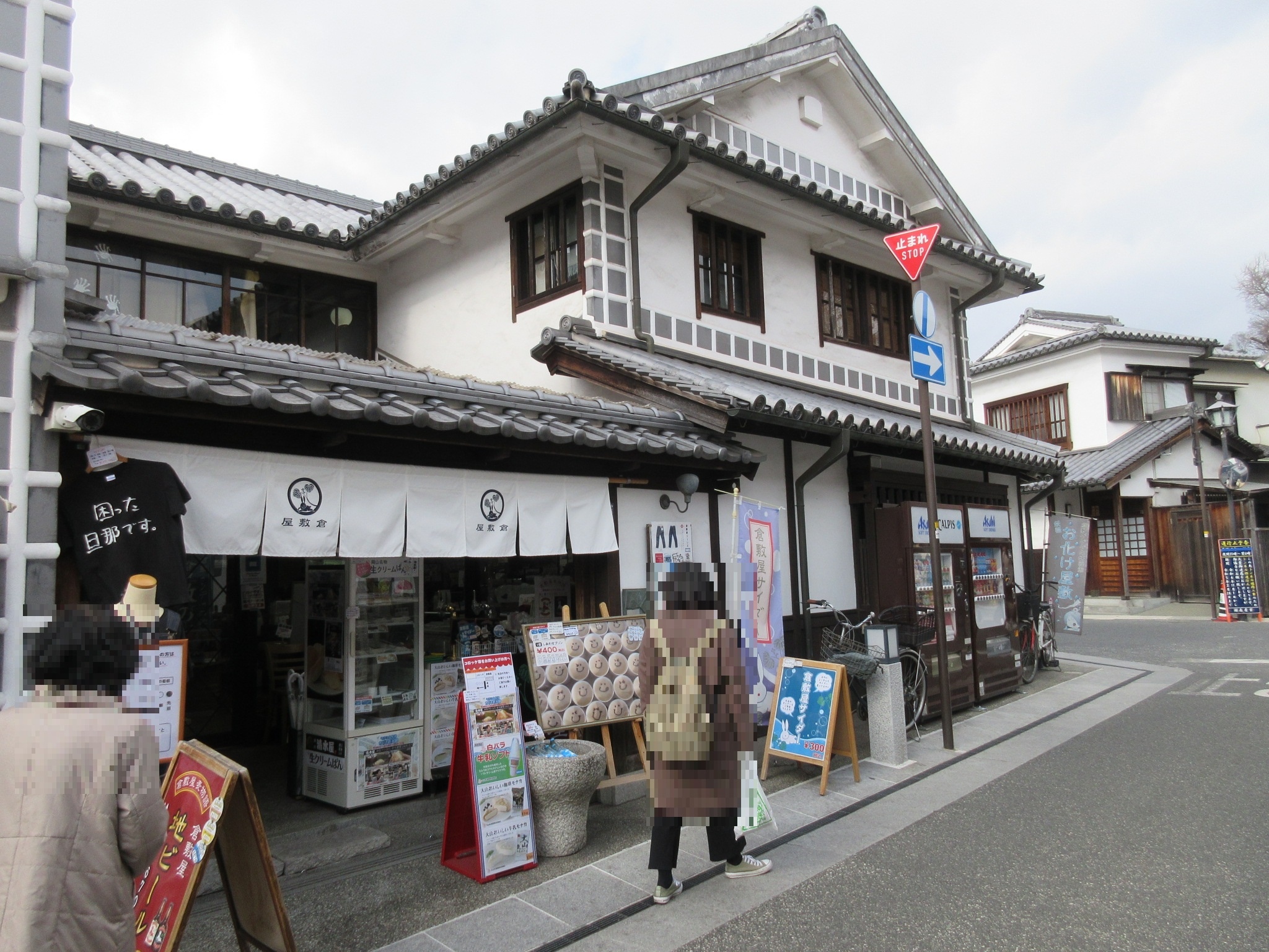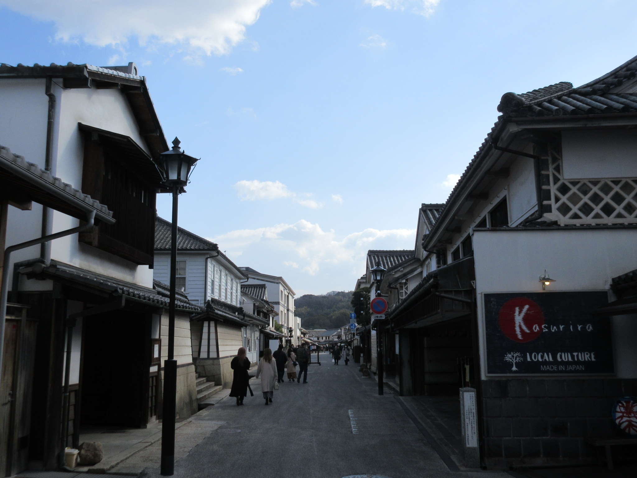 倉敷駅から【えびす通り商店街】を抜けると、古い町並みが残る通りが始まりました。ここが【倉敷本通り商店街】となっていて、老舗のお店が多いようで、古い建物を利用した各種専門店が立ち並んでいました。旅館や飲食店も多いですが、覗いているとお値段は少し高めの設定になっていました。