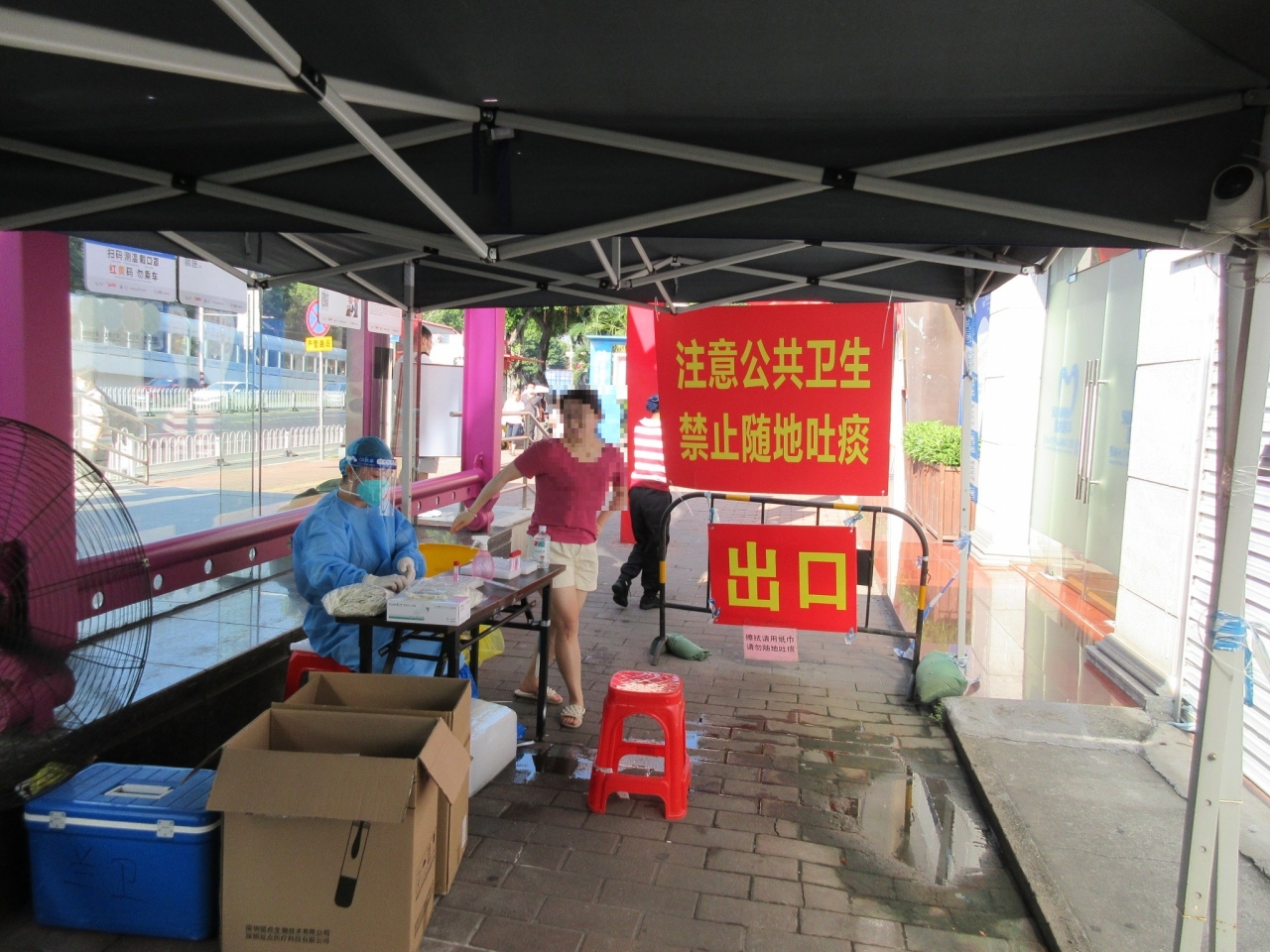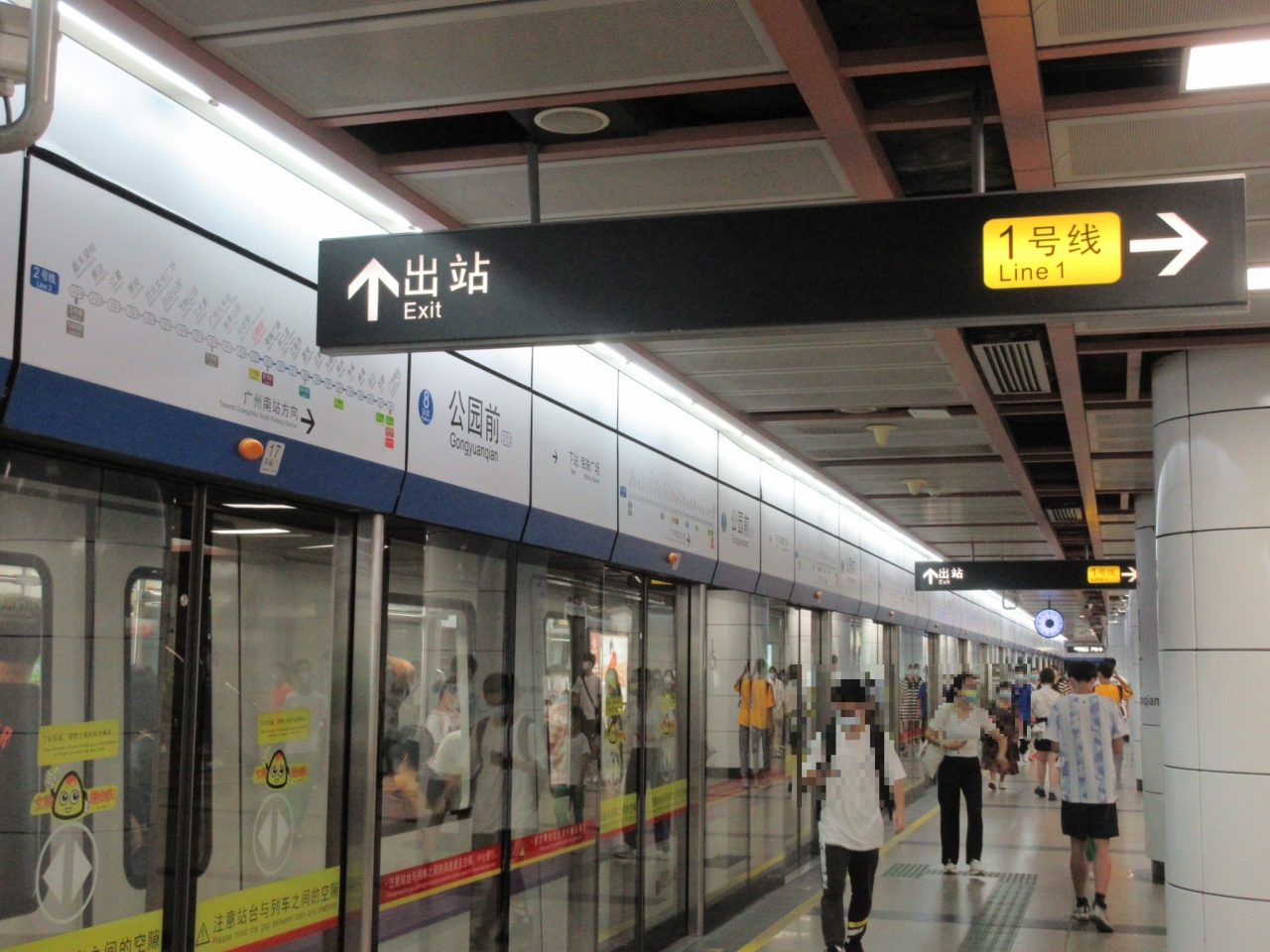 地下鉄6号線の駅で、沙面への最寄り駅の一つ。入口横に無料のPCR検査場があり利用しました。