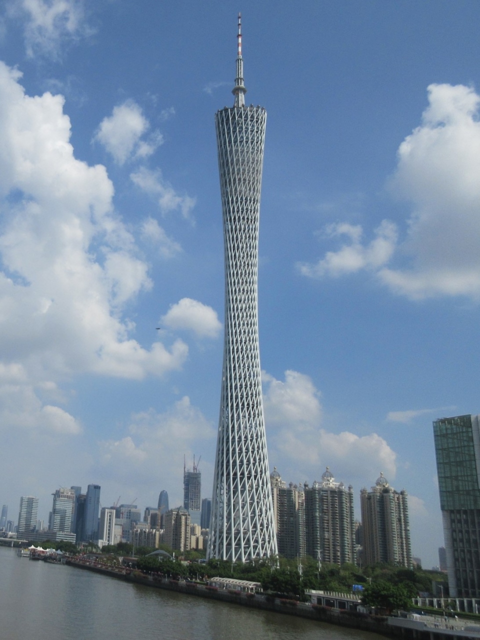 広州を代表する観光スポットとして知られるのが広州塔です。地下鉄三号線の【広州塔駅】で下車すると目のまえにそびえており、圧倒的な迫力がありました。