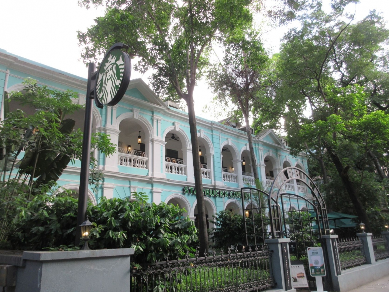 租界時代の古い建物が立ち並ぶ、広州の観光スポットである沙面にある、古い洋館を改装したスターバックスです。コロニアル様式を思わせる洋館で、熱帯のガジュマルの木々などを眺めながら頂くコーヒーは格別のお味です。訪問した時間が良かったのか、それほどお客さんも多くなく、落ち着いた至福の時を過ごすことが出来ました。