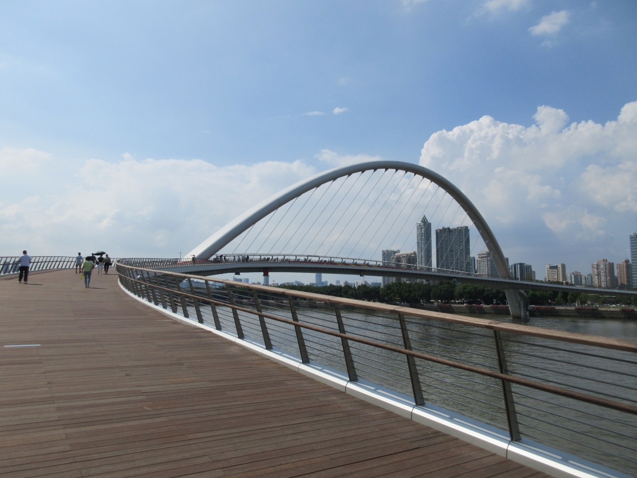 この橋は優しく弧を描くように架けられていて、広州塔の全体像を眺められるほか、対岸の超高層ビル群も手が届くような距離で見ることが出来ました。- 旅行時期