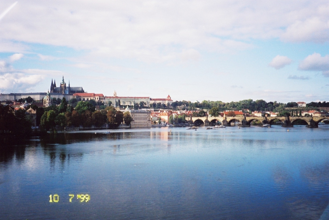 ゆったりとした流れの向こうに、丘陵を利用したプラハ城がそびえていました。