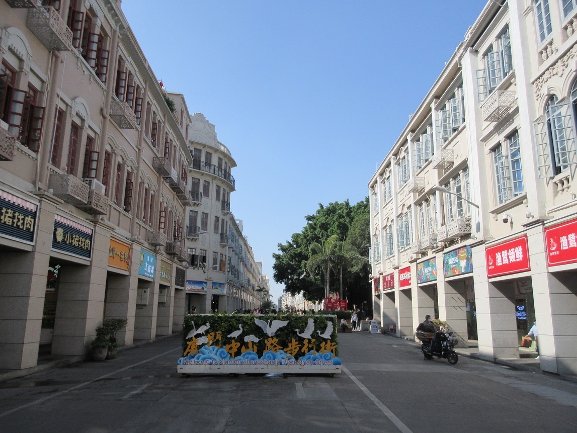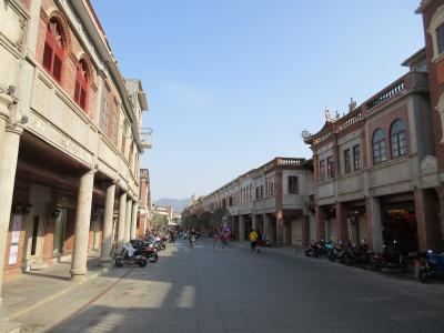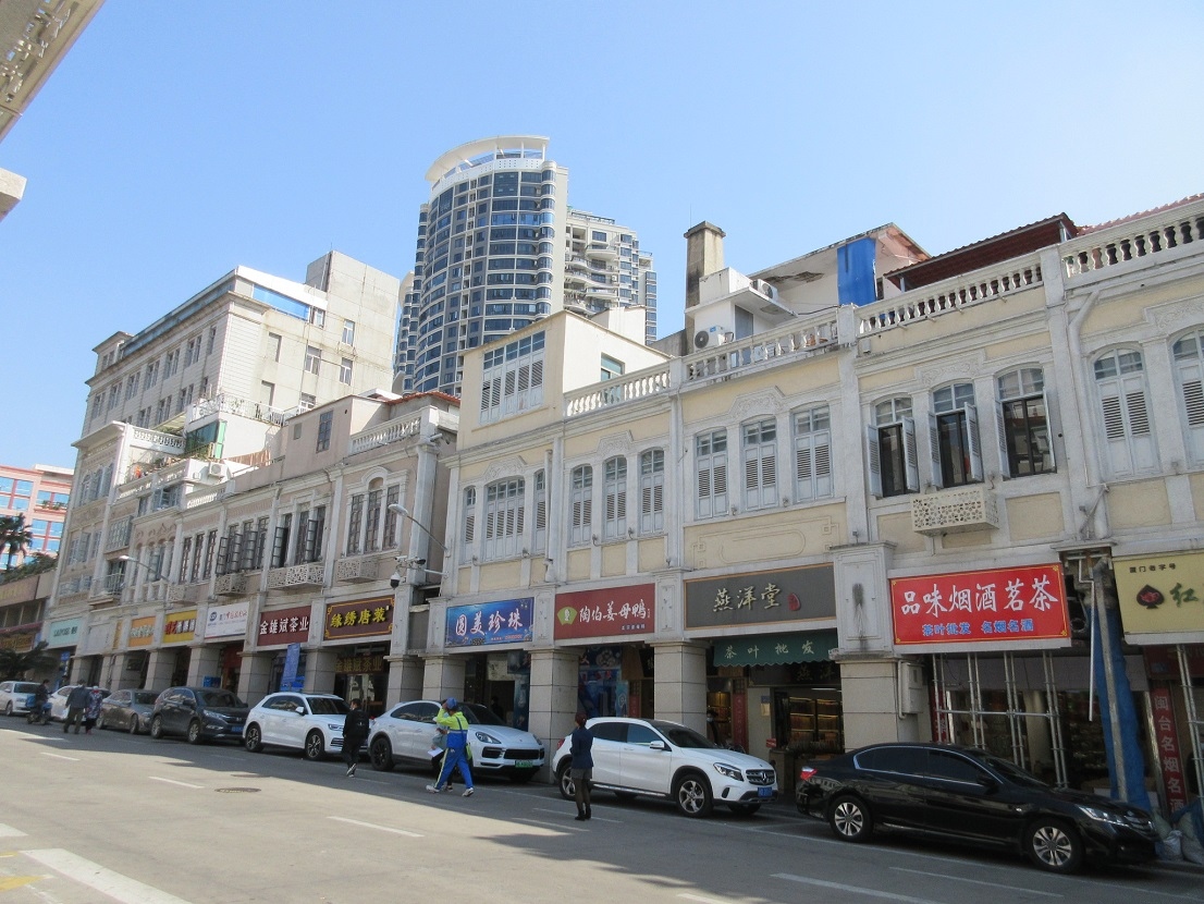 2階部分が張り出して1階部分を歩行者道路にするなど、台湾とも似た街並み。