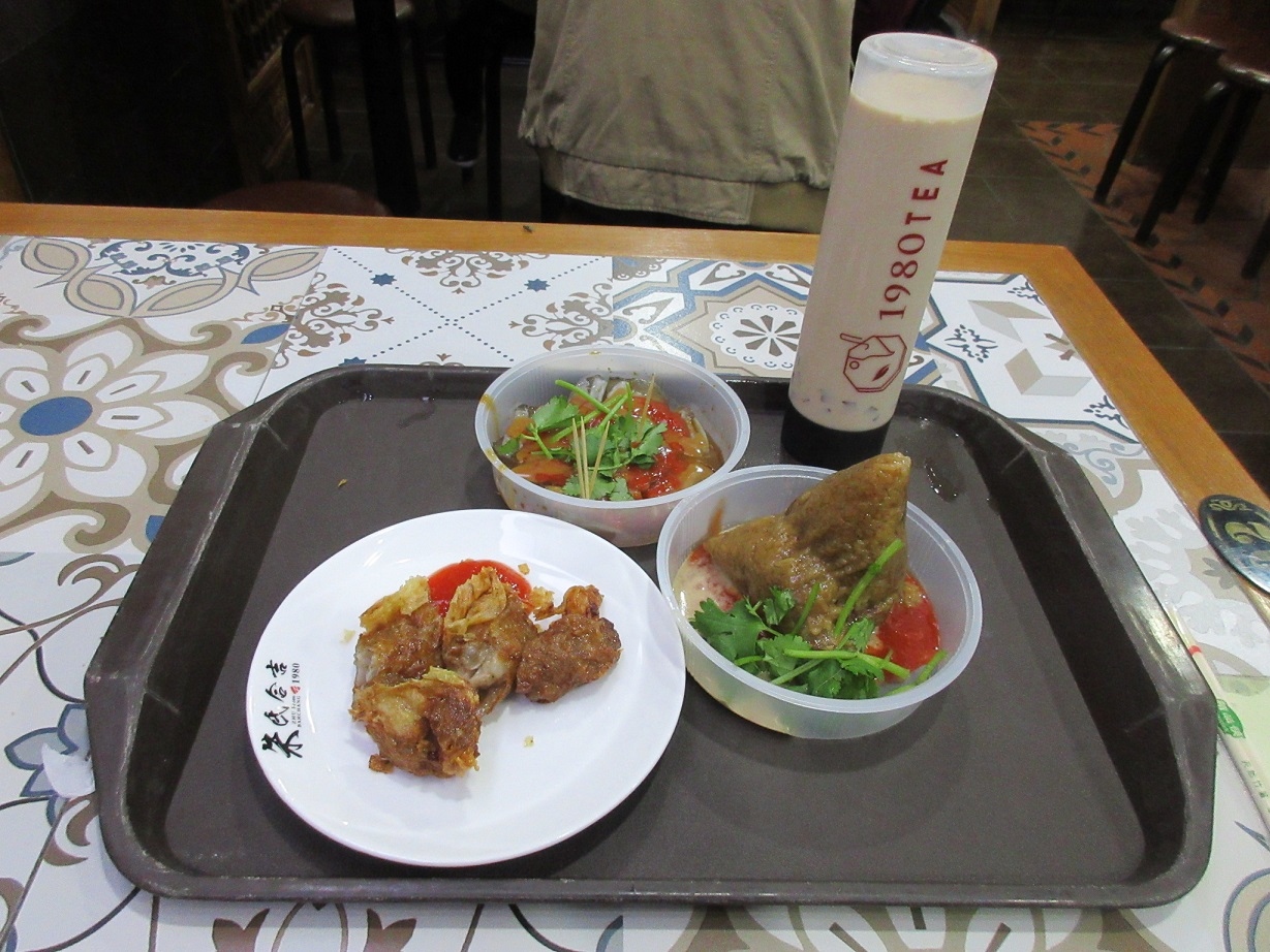 厦門島の中でも、古い趣のある建物が残る街並みである「中山路」にある大衆食堂です。道を歩いていて偶然見つけた【1980焼肉粽】というお店で昼ごはんを頂きました。肉入りの粽をメインに、海鮮を使ったおかずがセットになっており、450円~600円の手頃な価格帯でした。店内も清潔で、日本人の口にもあるさっぱり目の味でした。