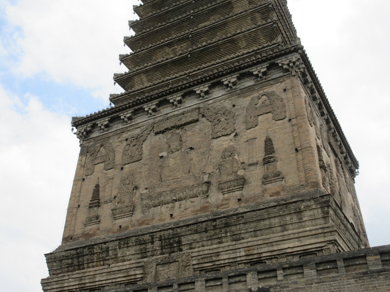遼の時代(10世紀から11世紀)の仏塔で、壁面装飾など見ごたえ十分です。