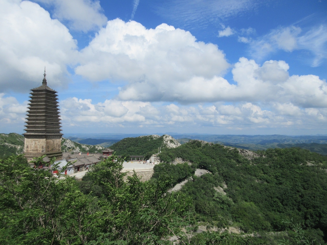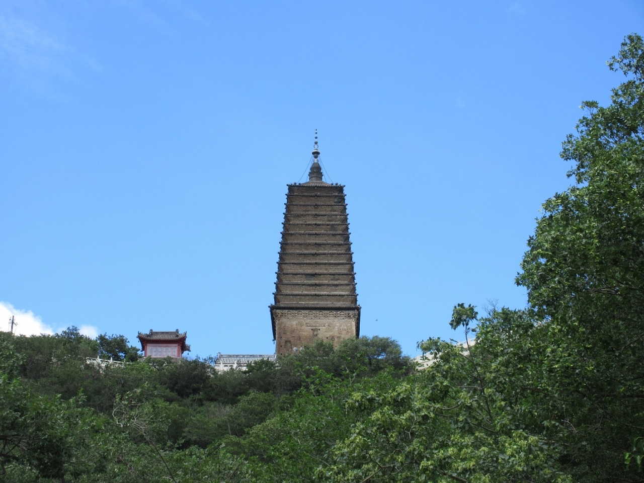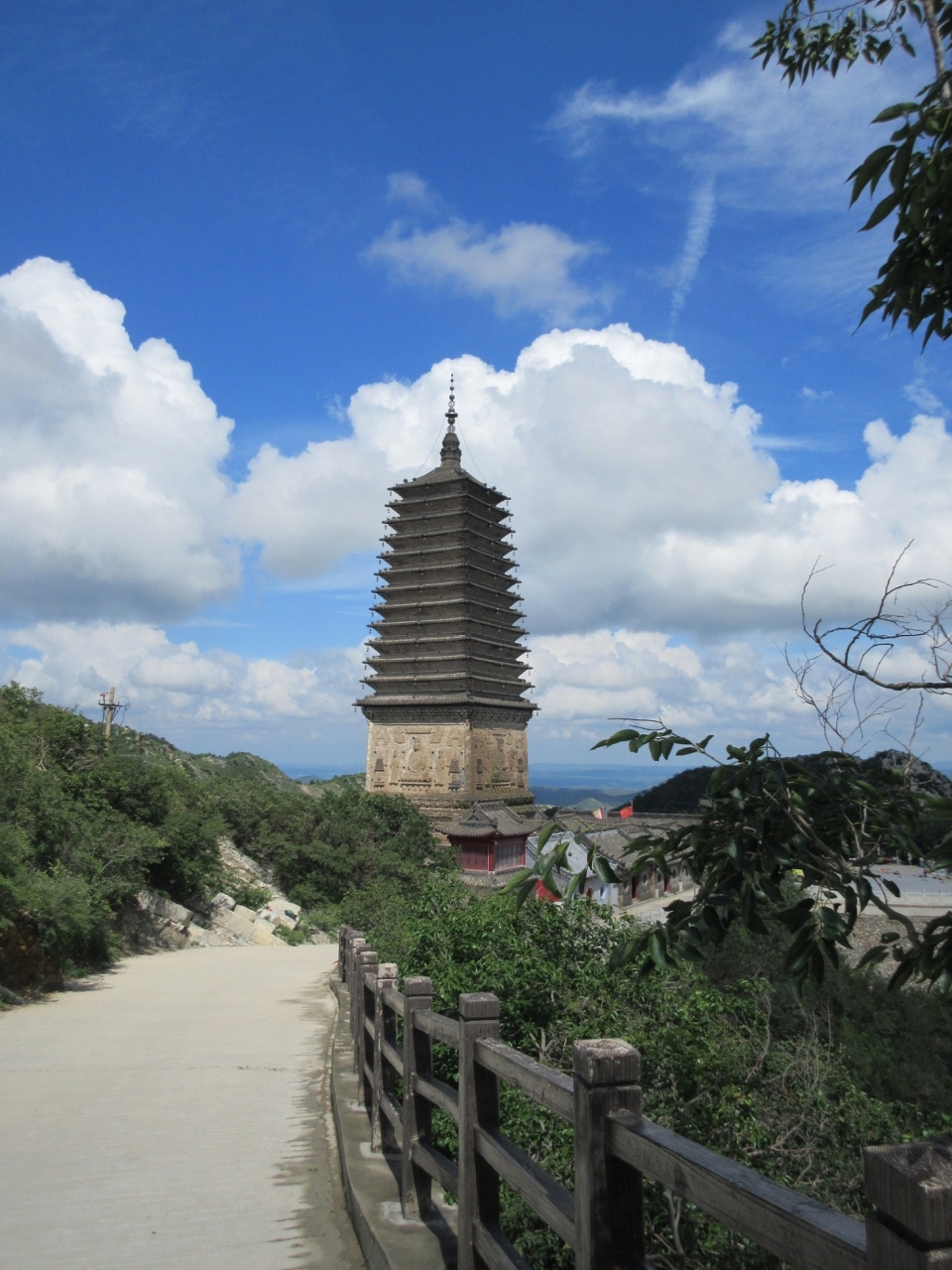 遼寧省の朝陽の街から車で20分ほどの距離にある【鳳凰山景区】の山中にすっくと立っていました。一般の車はこの「景区」の入り口にある駐車場までしか行けません。そのため、60元で「景区」に入場し、200mほど入った場所から観光客専用の黄色いカート(片道10元)に乗り山上へと向かいます。急カーブを幾度も過ぎて上へ上へと10分ほど登って行くと、少し平に開けた場所が停車場になっていました。そこでカートから降り、自らの(往年の)健脚を頼りに急坂を10分ほど登りますと、漸く目的の雲接寺塔に到着しました。山の上にあることから、密檐式13層の遼代の古塔はカートが停車場に付けば嫌でも目に飛び込んできましたし、急坂を登るのさえも楽しく感じられました。