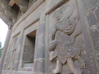 塔の一層目には、飛天や仏像などのレリーフが往時の姿をとどめており、とても見ごたえがありました。塔から脇にある坂道をさらに登ると、まるで雲海のように緑の山々が連なる、息を飲むような景観を楽しむことが出来ました。- 旅行時期