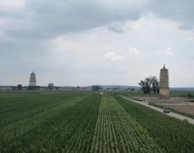 10世紀から11世紀にかけて栄えた【遼】という契丹人の国を代表する街【中京】があったのがこの場所とのこと。のどかなトウモロコシ畑の中に、この【大明塔】や24mほどの高さの【金小塔】、崩れかけた城壁(土塁)などが残されていました。