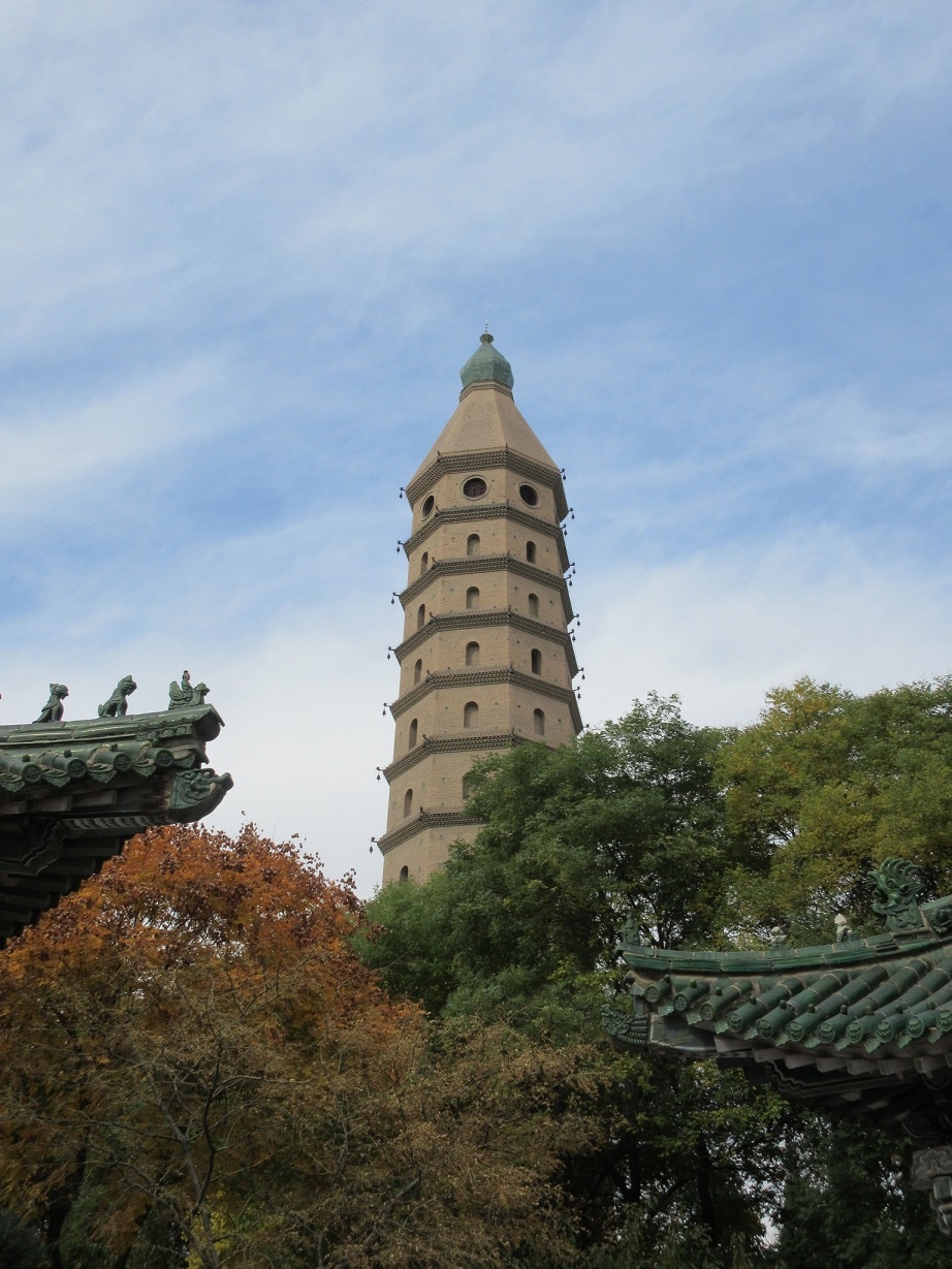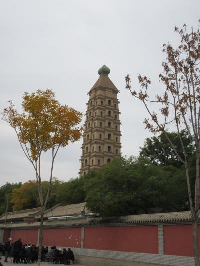 西夏王国の時代に建てられた承天寺塔が有名で、華美にならずシンブルな味わいがあります。鼓楼からは徒歩圏内ですが、思ったより見学者は少なくて落ち着いて見学が出来ました。現在残る塔は地震での倒壊後の19世紀の初めに再建された物とのこと。塔の中には急な階段があって、上に登ることが出来ました。