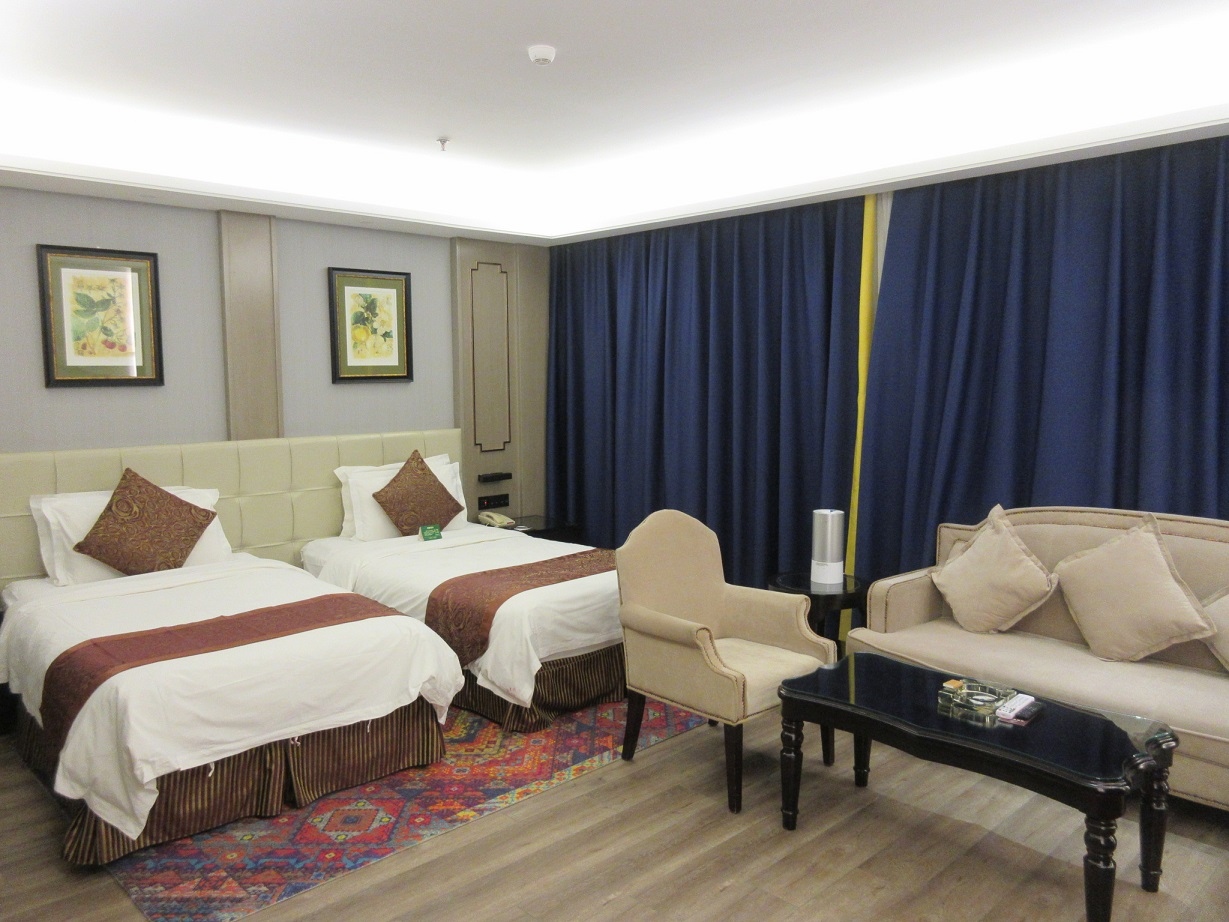 銀川の鼓楼まで徒歩数分という抜群のロケーションです。私が宿泊した際には、ツインを予定していましたが、一回り広い部屋にアップグレードしてもらい、大きなソファーもあり快適な滞在が出来ました。朝食は3階で取るのですが、おかずも豊富でした。