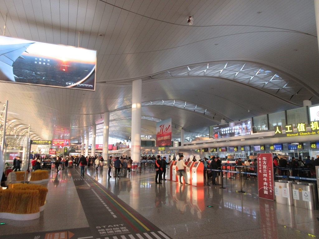 銀川の市内からおよそバスで30分ほどの距離にあるコンパクトな空港です。バスは片道20元で、およそ30分おきに出発していました。また、離着陸の際に飛行機からは、黄河の流れを眼下に見ることが出来ました。空港内にあるレストランは味の割に値段が高いと思います。路線は上海や北京などをはじめ、新疆ウイグル自治区のウルムチなどとも航空路線が結ばれています。