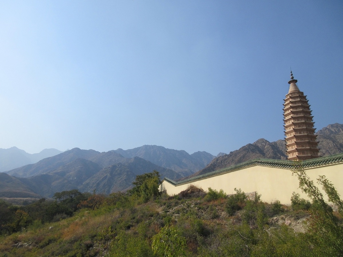 1961年に中国の国宝指定を受けています。平面で見ると、十文字と四角形を組み合わせた独特の形状をしており、他の中国の古塔とも明らかに形状が違うので興味深く感じられました。お寺の朱色の壁の横ではお年寄りが中国将棋やトランプに興じているのも、なんとも大らかな雰囲気を醸し出していました。