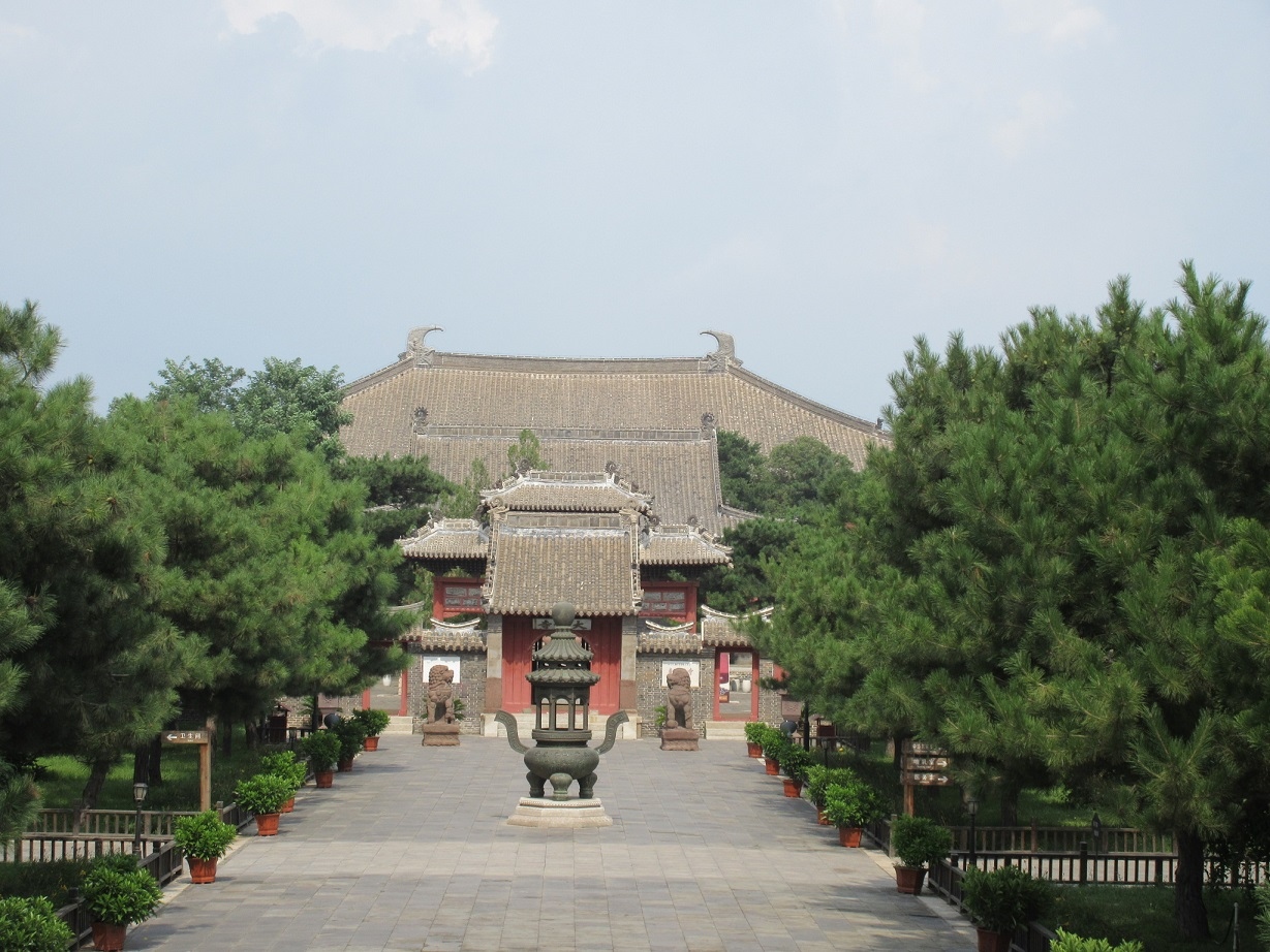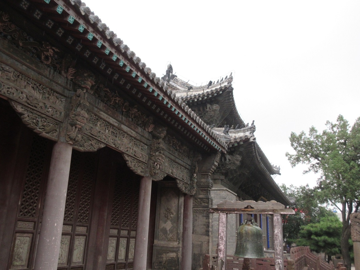 1961年に全国重点文物保護単位(国宝)に指定された、遼代を代表する木造建築の一つがこちらです。中国の古建築を研究した建築家の【梁思成】が絶賛した仏殿は、単層木造構造の建物では最大規模の物で、3mの基台の上に建つその姿は、優美で落ち着いた佇まいを見せていました。外から堂宇を眺めれば、寄棟造りの屋根とその上の鴟尾が、日本の古建築の原型を思わせます。堂宇の中に入ると、柱と梁が複雑に組み合わさった建築美には思わず息をのみました。