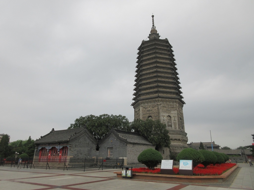 遼寧省の錦州を訪れた際、市内にある【広済寺】を見学しました。古塔公園として整備されていて、【全国重点文物保護単位】、つまり国宝に指定されています。私が訪れた時には、小雨が時折ぱらつく天気でしたが、私を含めて何組からの見学者が訪れていました。1057年の創建されたといわれる古刹だけあって、見ごたえのある垂木や肘木を特徴とする堂宇が何棟も残っていました。有料エリアの手前の公園の一角には、57mの高さを誇る古塔も残り、変化に富んだ景観が楽しめました。