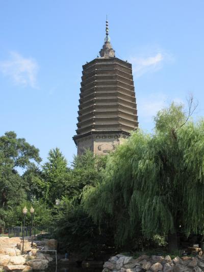 遼寧省の瀋陽を訪れた際、高速鉄道で35分ほどの距離にある【遼陽】の街を訪れました。旅のお目当てはこの街を代表する【遼陽白塔】。中国の漢民族ではない異民族の王朝で中国の華北から東北区にかけて数多くの仏塔を残しました。その中でも代表的な仏塔の一つがこちらで、密檐式8角13層の堂々した塔は、遼陽駅を降りたところから目に飛び込んできました。地図もいらず、そのまま大通りを東に進めば15分ほどで到着しました。周りは綺麗な公園として整備されていて、大きな池もある緑豊かな公園には大勢の家族連れが集っており、とても開放的な雰囲気でした。