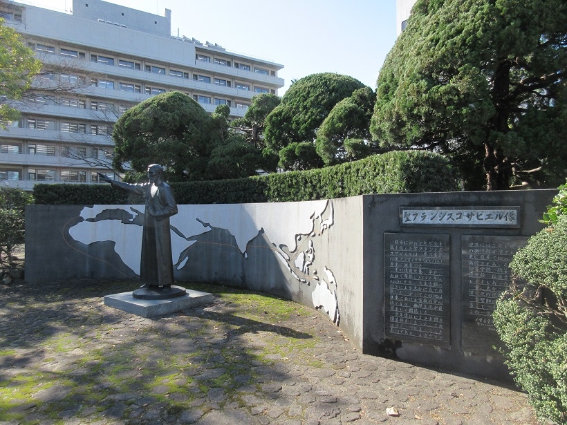 大分に滞在した際、オフの時間を利用して【遊歩公園】沿いを散策しました。大分県庁からほど近い場所に【フランシスザビエル像】があり、興味を持って鑑賞しました。戦国時代に大友宗麟の招きにより大分で布教をしたことが紹介されていて、当時の日本でキリスト教の影響がより大きくなったなら、その後の歴史はどうなっただろうかと、想像してみるのも一興でした。右手を斜め前に揚げ、後ろには世界地図が描かれていました。